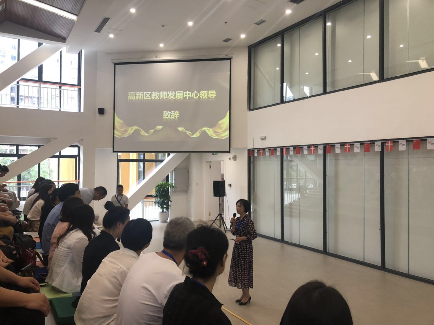 接着,高新区教师发展中心主任李建萍致辞,肯定了创新人才培养的重要意义,提出师生都要树立时时都要创造之机、处处都是创造之地、个个都是创造之人的观念,建议要最大程度保护孩子的好奇心;曾校长向大家介绍了近一年来学校的发展情况以及课程设置和学生创新思维培养方面的特色,对能成为教育部——乐高“创新人才培养计划”项目实践基地校以及四川师范大学给予霍小的大力支持表示感谢,霍小将继续发挥好基地校的职能与义务,担当好社会责任与使命,力争将基地打造成为靓丽名片!最后,来自成都市龙泉驿第五小学校长吴璀和成都师范银都小学老师冰洁分别作了主题发言。