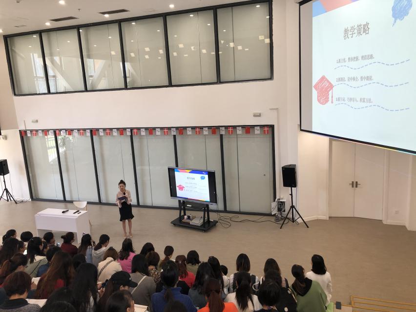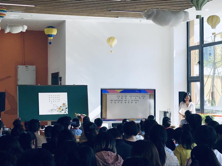 展示课之后,在曾霞校长的带领下,老师们参观了校园并前往丑小鸭童话剧场聆听经验分享。李娅玲老师针对展示课《玲玲的画》做了教学分享,她着重从抓主线、抓朗读、抓字词三个教学策略入手,详细解读了展示课的教学思路。许雯雯老师针对展示课《菊》进行教学分享,分享的主题是如何激发孩子对文言文起始课产生兴趣的思考。最后,曾霞校长对成都霍森斯小学进行了详细的介绍,她提到当学校空间与课堂结合,课堂就不仅仅局限在教室内,空间即课程,空间即课堂,她还强调我校的空间构造是面向孩子的,学校的空间设计处处都体现出对孩子无微不至的爱与尊重,当责任与爱并肩,校园处处都充满着温暖。