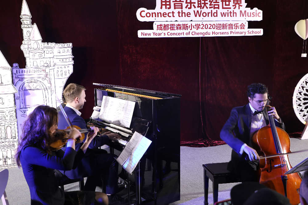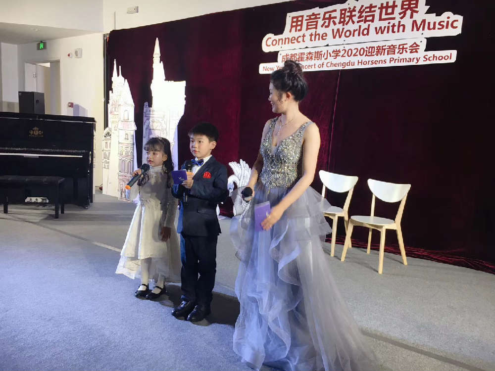 2019年12月30日晚上,丑小鸭童话剧场座无虚席,掌声雷动,由成都霍森斯小学主办的“音乐联结世界”2020迎新音乐会在此举行,全校教师及部分学生和家长一起欣赏了这精彩绝伦的艺术盛宴。