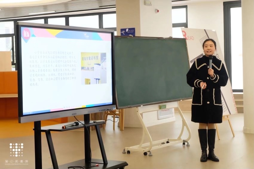 随后,我校张涵琳老师就学校书馆的利用以及阅读课程的开展作了“让书香浸润童年”的主题分享。张老师从书馆的布局、管理以及利用三个部分给各位老师进行了详细阐述,并结合学校开展的阅读活动和大家进行了“为什么读、读什么、在哪里读、怎么读、怎么评”的细致分享。