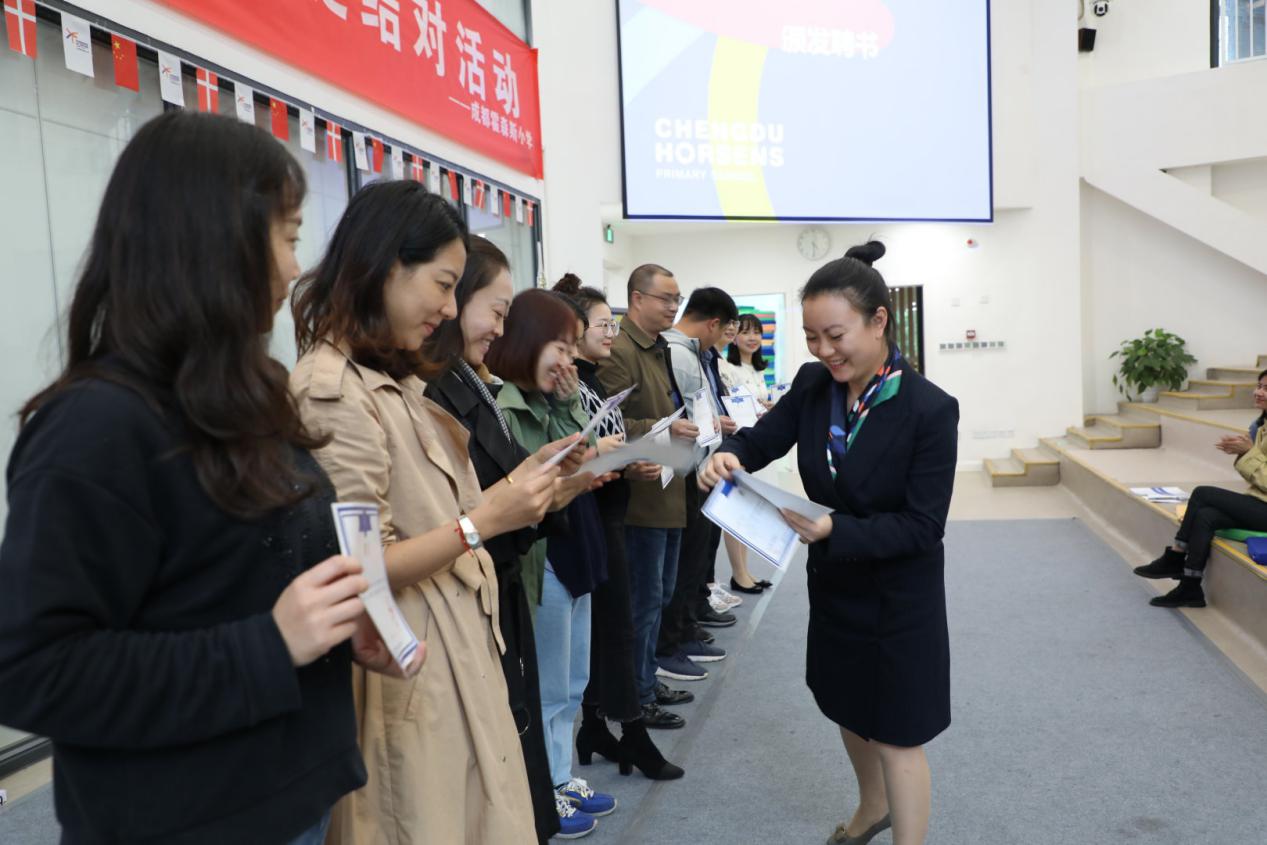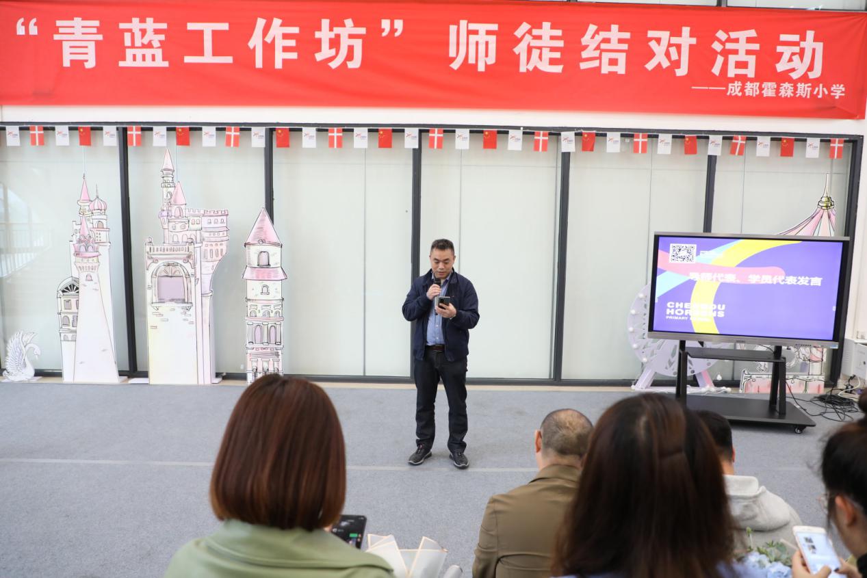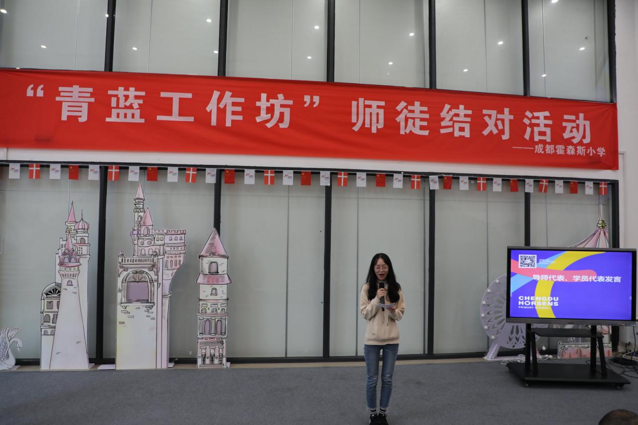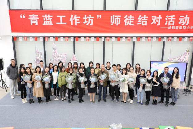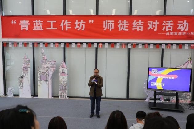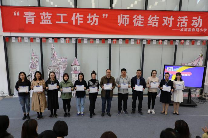 为充分发挥学校名师的影响力和辐射作用,加大对青年教师的培养力度,全面提高教师的师德修养和教师业务素质,10月9日下午,成都霍森斯小学第二届“青蓝工作坊”师徒结队活动在丑小鸭童话剧场隆重举行。本次活动主题为“携手启航 助力成长”,师徒结队创新思路,分为学科类、班级辅导员类、管理岗三个类别,全方位覆盖了学校各级工作。