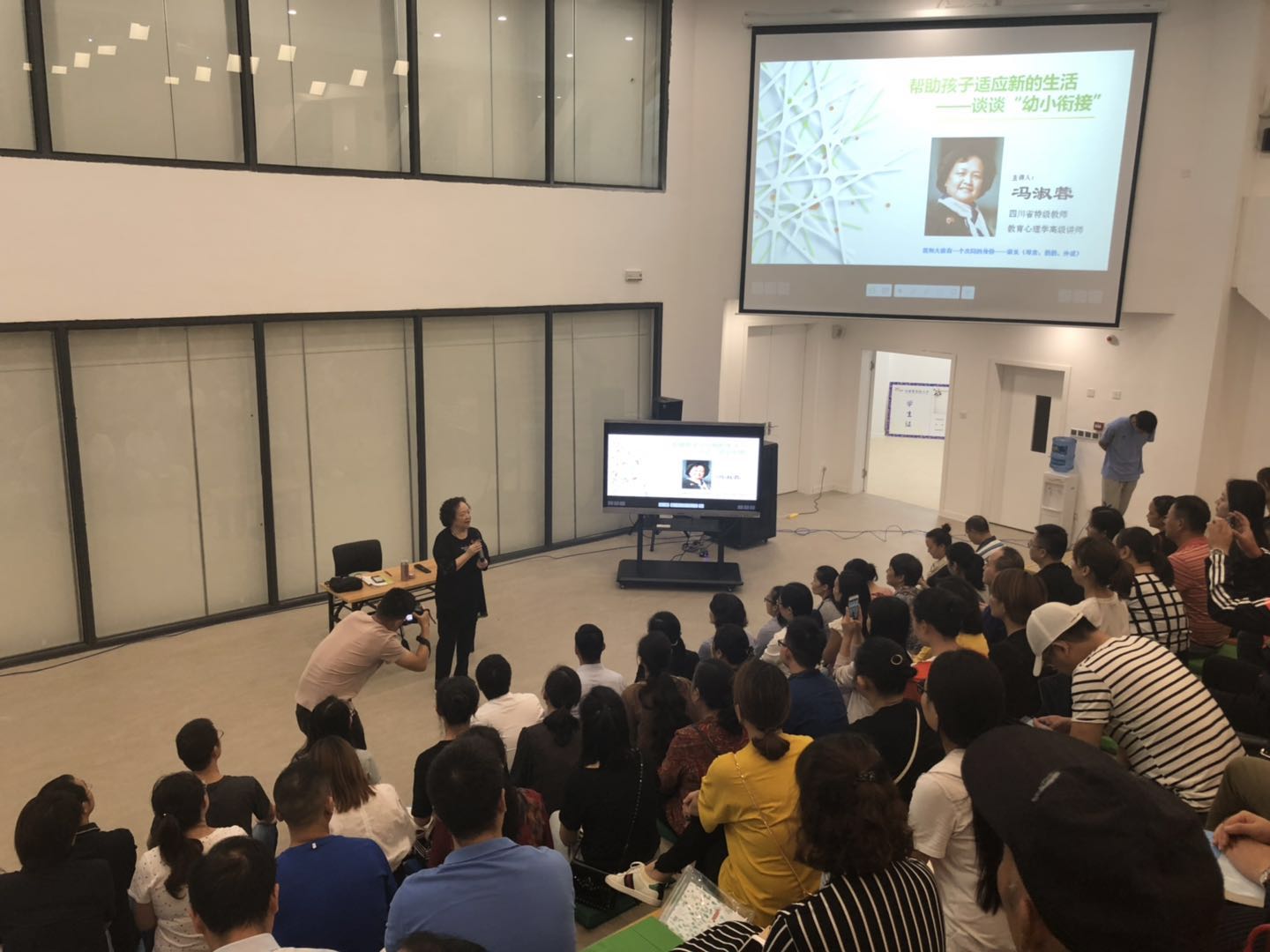 冯淑蓉老师以“帮助孩子适应新生活——谈谈幼小衔接”为题的讲座
