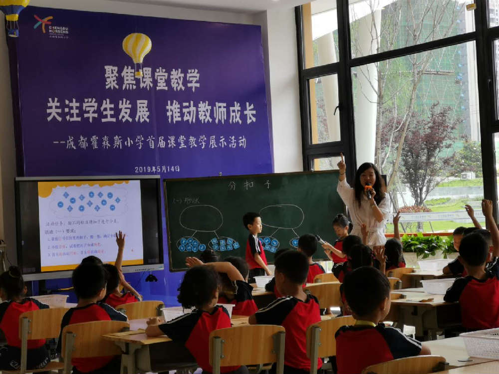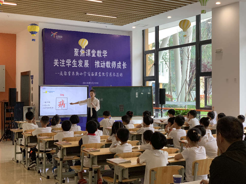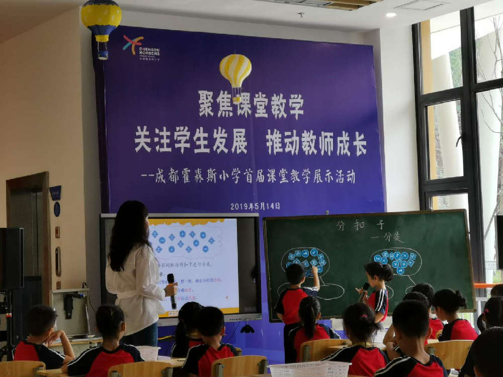 为践行《中国学生发展核心素养》,关注每一位学生的学习过程、提高青年教师学科教学能力和专业自主发展能力。2019年5月14日,围绕“课程、课堂、课题”三课联动的内涵发展思路,成都霍森斯小学举办了首届课堂教学展示活动。