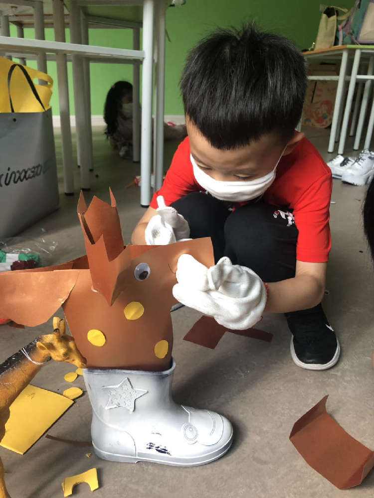 经过层层选拔,成都霍森斯小学一共有三支队伍脱颖而出,分别是李官杨的平面作品《快乐的篮球》、刘言丞的动画作品《我和二宝三宝》以及彭禹乔等七人的立体装置《动物的迁徙》,三组作品均获高新区国际少儿美术作品展“一等奖”。其中《动物的迁徙》是孩子们用旧鞋子做出各种创意十足的动物,体现了孩子们爱护环境、对大自然的热爱之心。活动发起后,这七名同学集结起来,一同查资料、画设计图、动手制作,整个准备过程花了一个月的时间,孩子们在创作中发现了美术的奥妙、体会了制作的乐趣、享受了成功的喜悦。