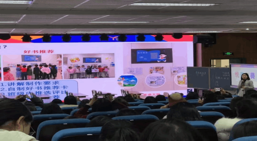 让孩子们在快乐中阅读应是我们每一位语文教师的追求,让每一个孩子在阅读中提升幸福指数更是我们每一位语文老师的美好愿景。老师如何扎根课内,带着孩子进行拓展课外、大量阅读,让每一位孩子都乐于阅读呢?许老师结合霍森斯小学、墨池书院小学、益州小学开展的阅读活动和大家进行了“为什么读、读什么、怎么读、怎么评”的细致分享,其中穿插有小古文起始课《菊》的片段教学视频。“回顾微主题的整个打磨过程,从分享内容的选择再到不断修整,高新区区教研员邓偲娟老师和我们学校的语文组老师们给予我悉心指导。”许老师很感谢她身边的老师们。