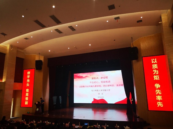 在第二天的学习中,菁蓉小学陈曦校长带来精彩讲座—《面对不确定的因素 做一个确定的自己》。陈校长以草根自喻,结合自己亲身经历从“确定感恩、确定坚守、确定改变”三方面与新老师深入浅出讲明教师自身发展要积极求变、挑战自我。而电子科大附中张云校长讲座《新起点,新征程;不忘初心,砥砺前行》激起了全体新教师的学习热情。张校长专业而风趣,为全体新进老师树立了一个良好的教师榜样。