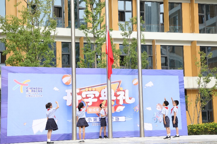 一袭清风避暑意,秋景初微向美好,新学年,从“新”启航。2020年9月1日成都霍森斯小学隆重举行了主题为“爱成都 迎大运 霍小娃娃在行动”的开学典礼。