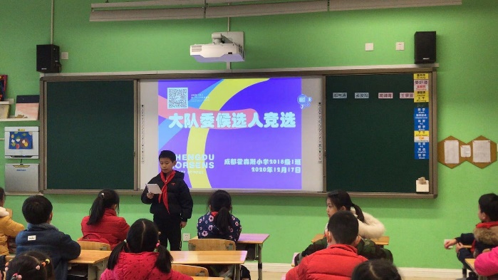 2020年12月18日下午,成都霍森斯小学三年级全体辅导员和学生举行了2020~2021学年度少先队大队委竞选活动。