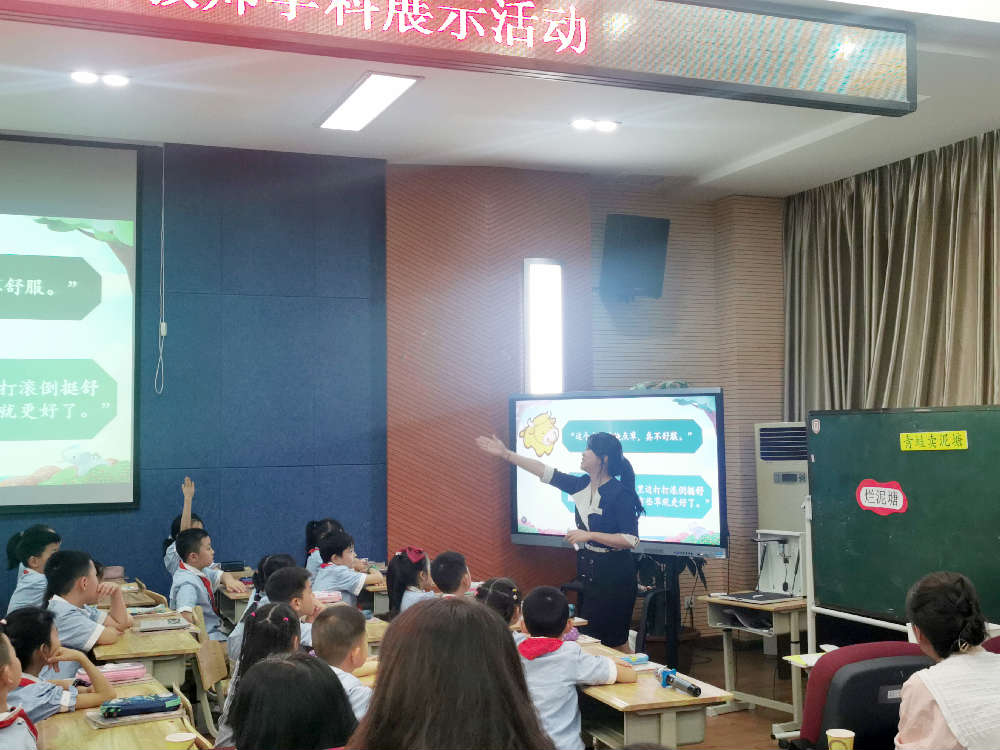 曹苧文老师执教的《青蛙卖泥塘》教学设计新颖、教学层次清晰、课堂氛围活跃,以演促读促理解,赢得了现场专家和与会老师的一致好评。