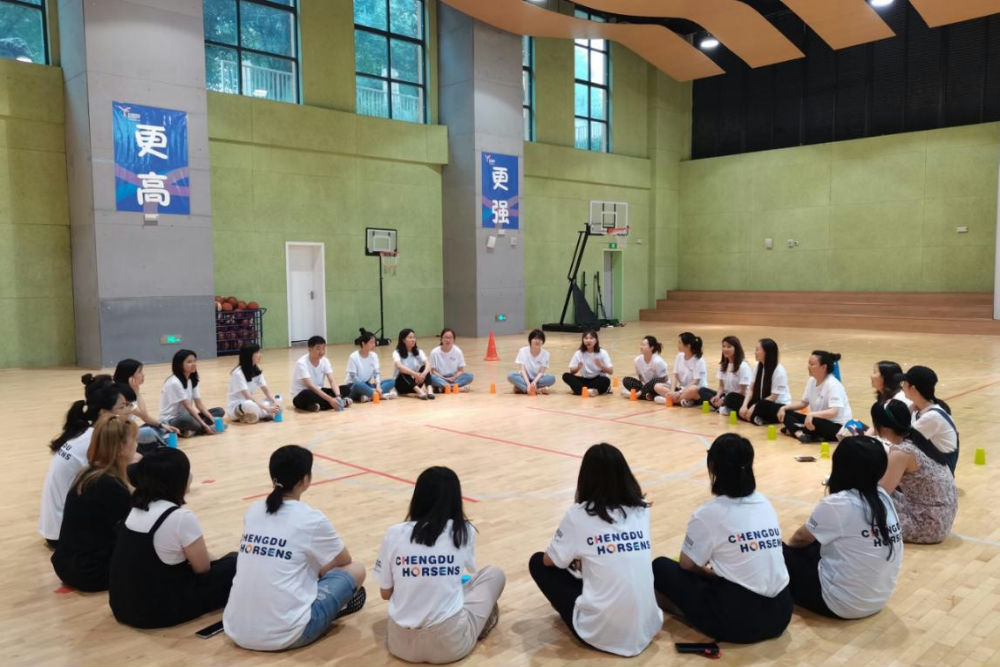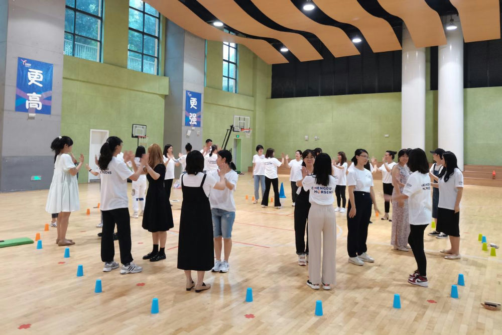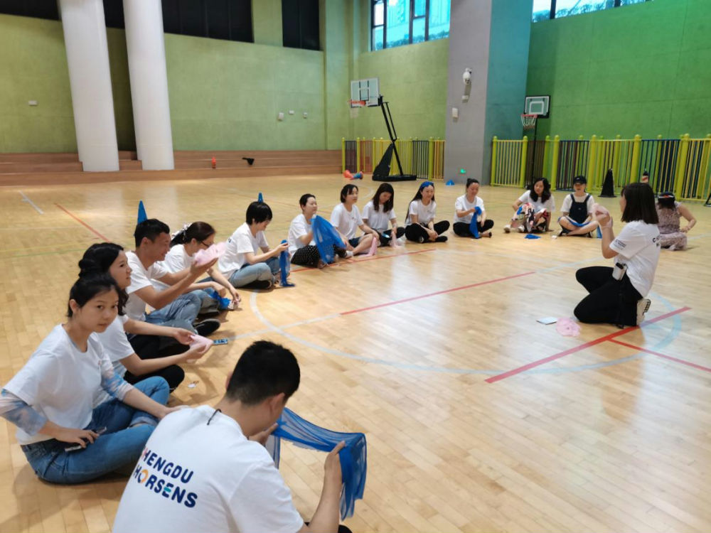 在音乐治疗师张铎三的指挥下, 40多位老师围成圆席地而坐,开始了快乐的团辅之旅。张老师给每人发了一只塑料杯,并介绍杯子的用途,即用我们的身体和这个杯子组合成音乐,说着便让我们跟着做了起来。看似简单的过程,做起来还有点难度,大家越拍越起劲,虽然拍红了手,但依然意犹未尽。紧接着两人配合及全体配合边打节奏边传递杯子系列挑战,随着难度一次次升级,老师劲头更足了,将挑战进行到底。