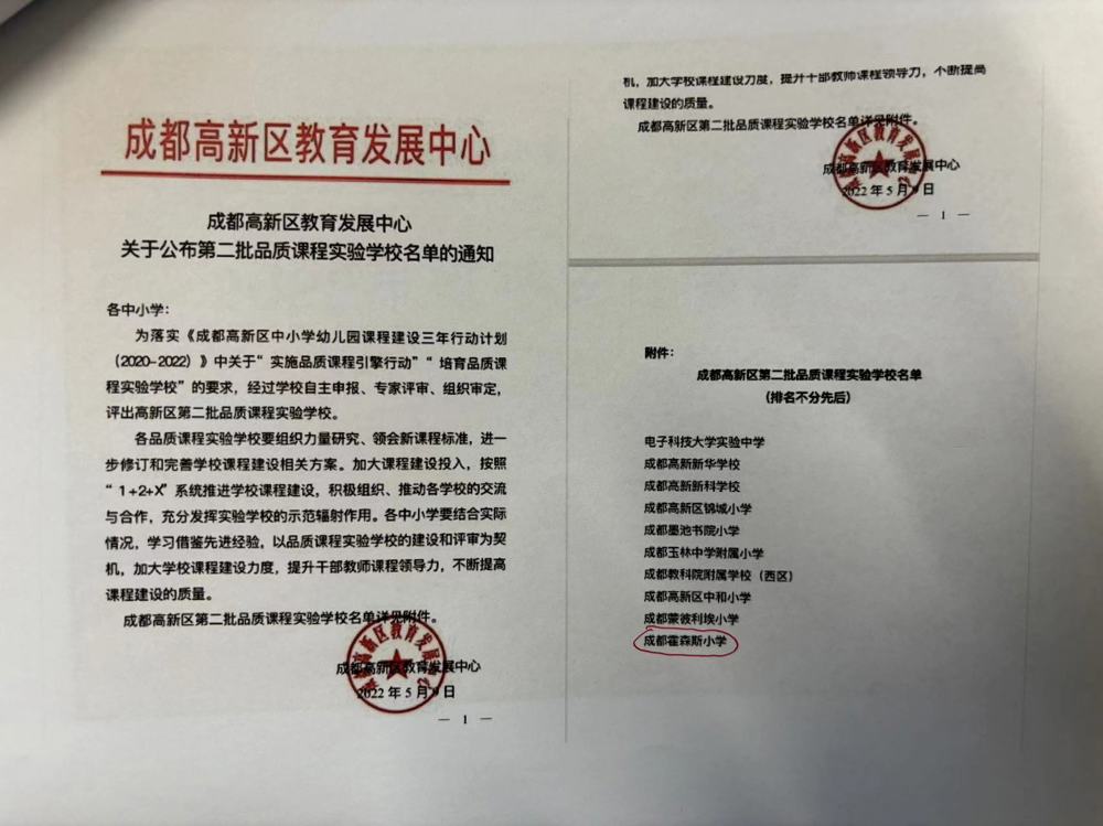 成都高新区第二批品质课程实验学校
