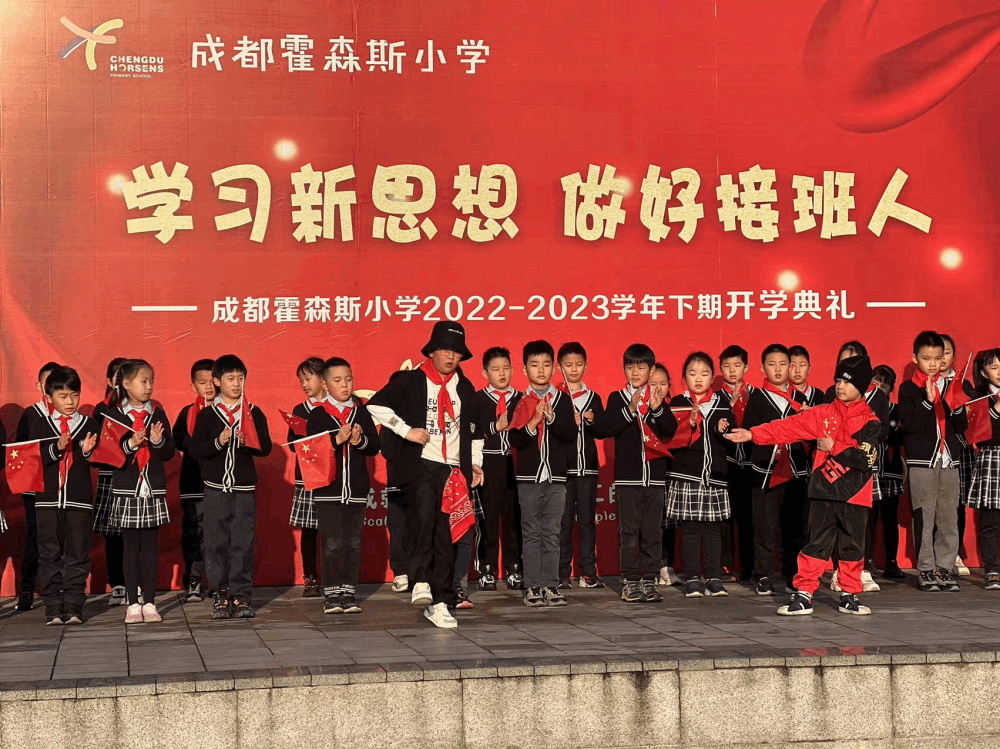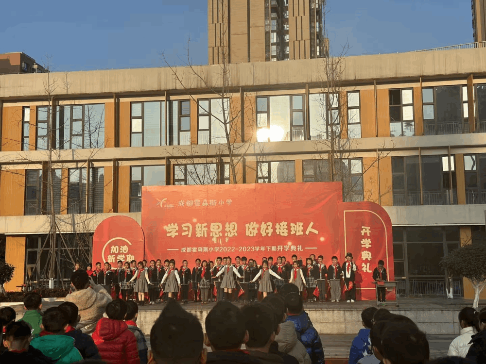 2月14日上午,成都霍森斯小学举行了主题为“学习新思想 做好接班人”的开学典礼。