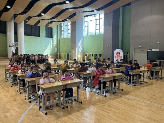 下午2:00活动准时开始,曾校长发起了爱眼护眼倡议。一至五年级学生本次将以不同的形式参与到爱眼护眼的行动中。