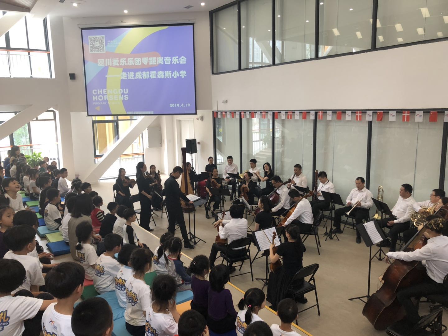 为深入贯彻党的十九大精神,丰富学生课余文化生活,培养学生良好的审美情趣和艺术素养,弘扬传统音乐文化,四川爱乐乐团于4月19日光临成都霍森斯小学举行"四川爱乐乐团零距离"音乐会演出。